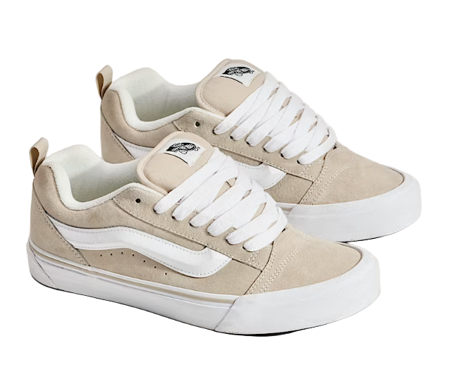 The Vans Knu Skool Suede Shoe in Neutral Beige combines classic skate heritage with refined everyday style. Crafted from premium suede, this silhouette features the iconic side stripe and reinforced toe cap for durability. The cushioned midsole delivers responsive comfort for all-day wear, while the grippy rubber outsole ensures reliable traction. Perfect for those seeking a versatile neutral that transitions seamlessly from street to casual settings. A timeless addition to any footwear collection.