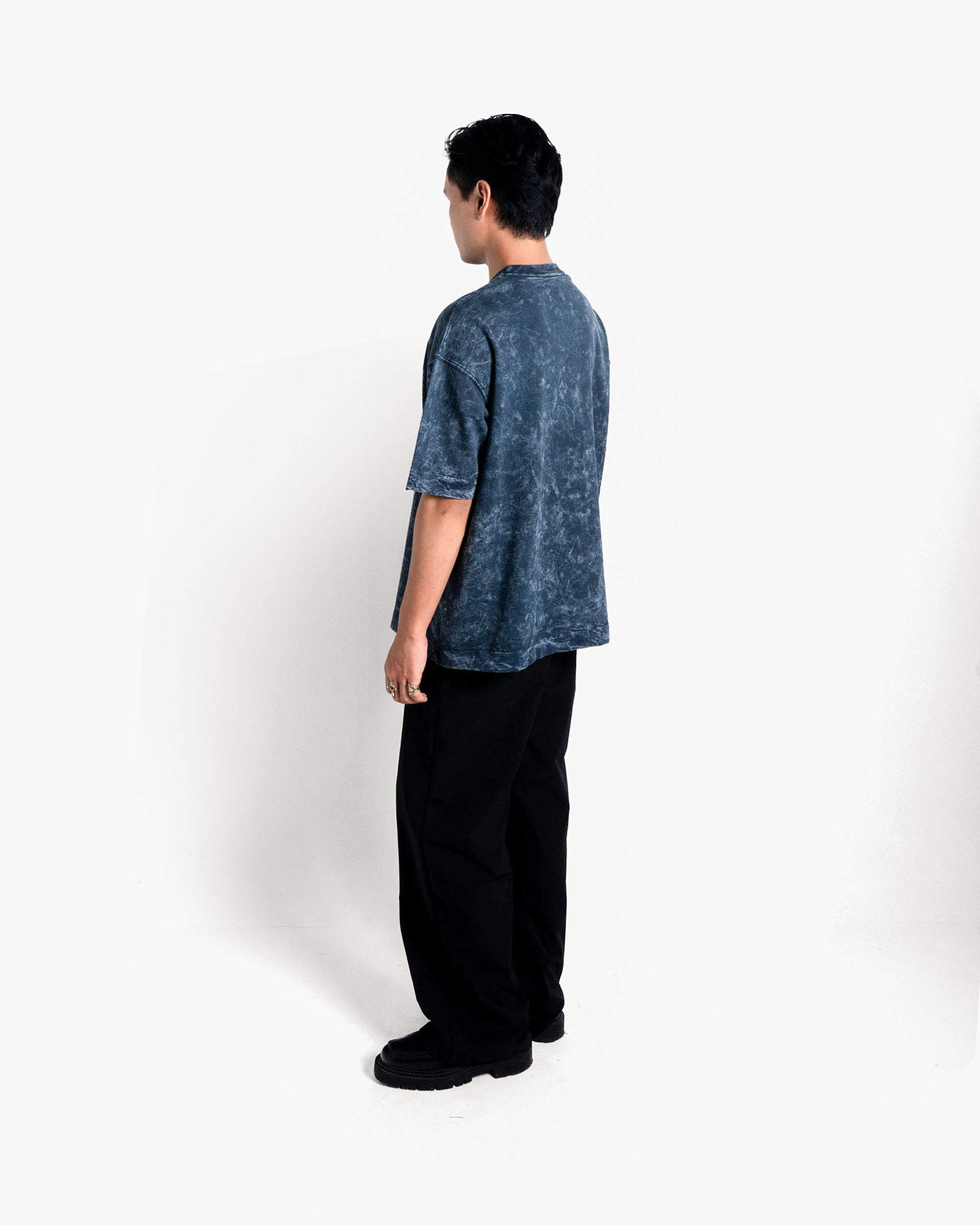 The Vesper T-shirt draws inspiration from twilight’s calm, Crafted in a faded washed navy tone, the garment captures the essence of evening skies, while the vintage wash effect adds texture and character. Made from 100% Cotton Terry Looper at 250 GSM, it balances structure with all-day comfort.