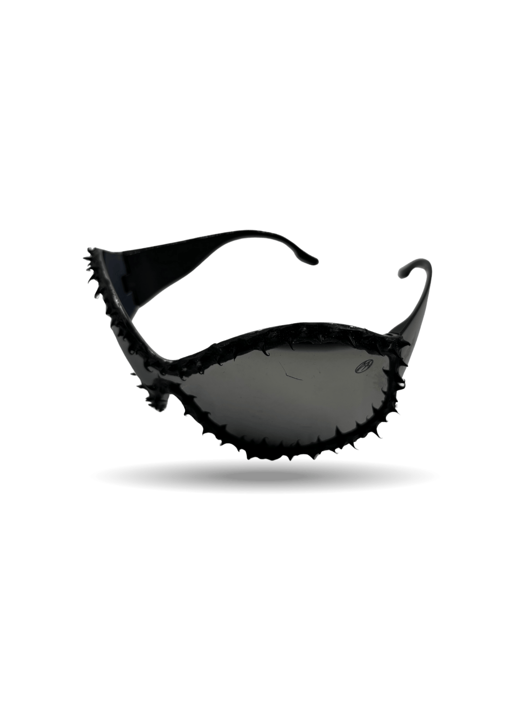 Throw shade without saying a word in VIEWEND WEEP — loud, low, and laced with 3D-printed attitude. These aren’t your clean-cut classics — they’re built for chaos, for alleys lit by LED, for selfies with zero apologies. The exaggerated wing-tips and layered detailing scream Y2K street villain, while the slick wrap-around fit keeps things snug when the tempo spikes. This isn’t eyewear. It’s a flex.