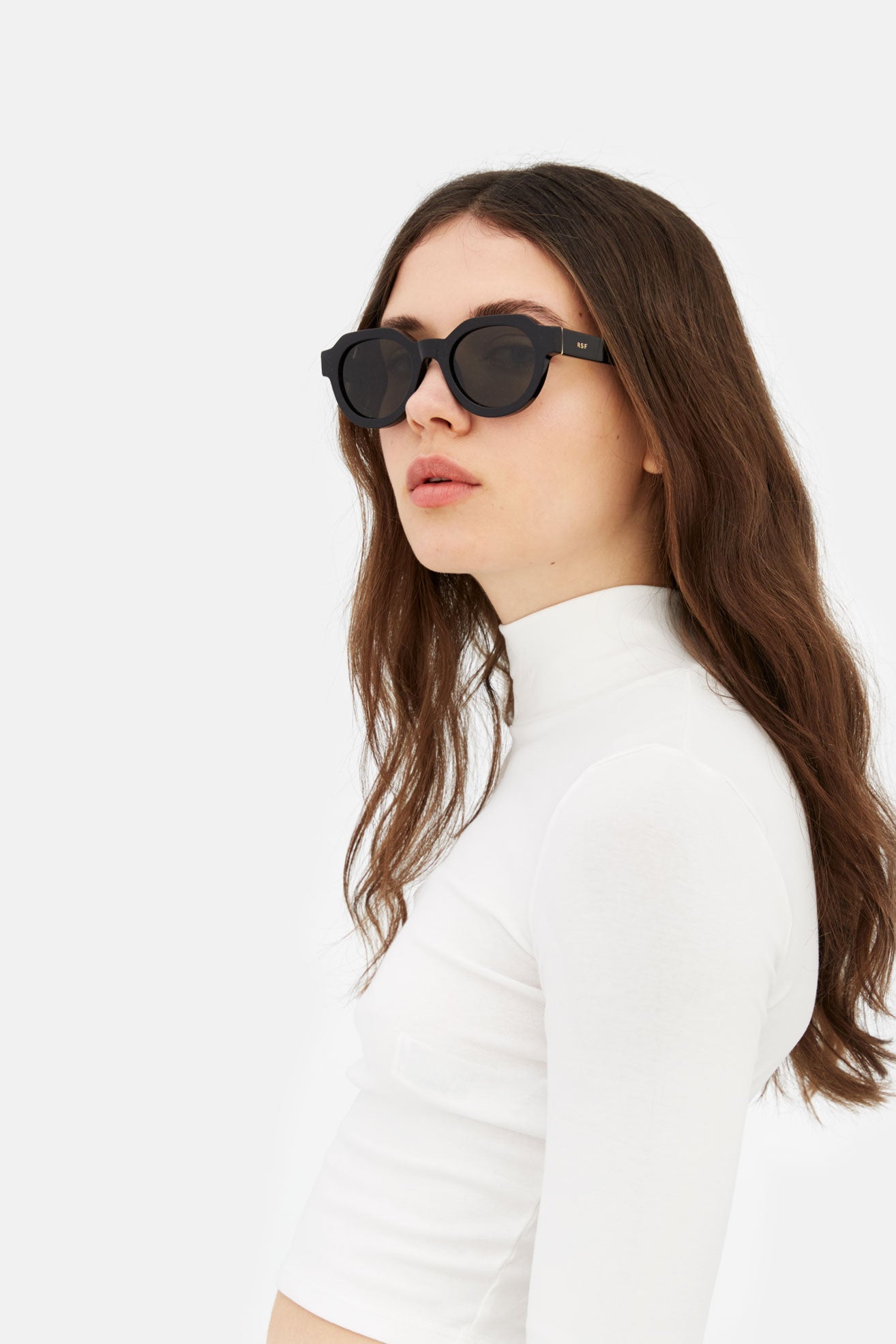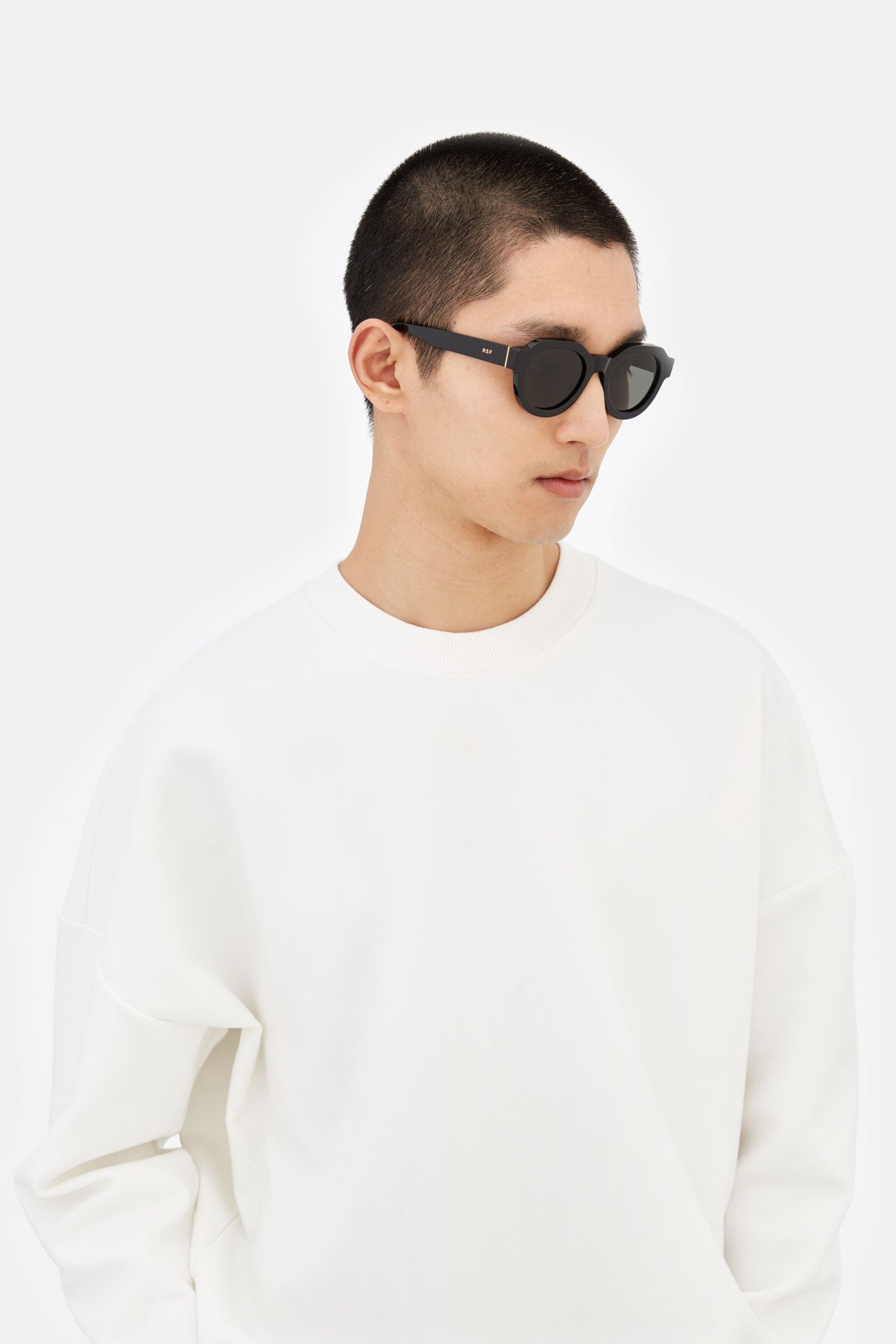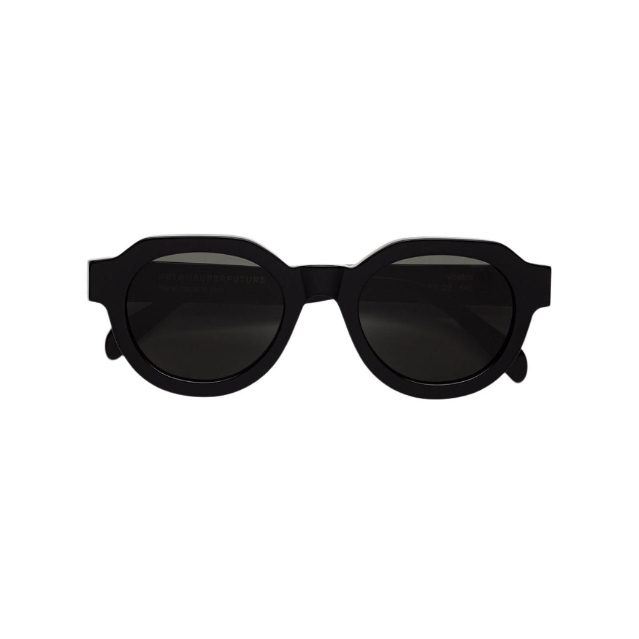 Vostro is a sleek rounded shape that captures the essence of timeless style, updating it with a contemporary design twist. Sharp, geometric rims are matched with soft oval lenses as an elevated version of classic rounded sunglasses. The model’s design is characterised by pentagonal shaped rims, with sturdy temple tips and a lowered nose-bridge for an essential yet determined, elegant piece. This version of Vostro features a shiny black acetate and matching lenses.