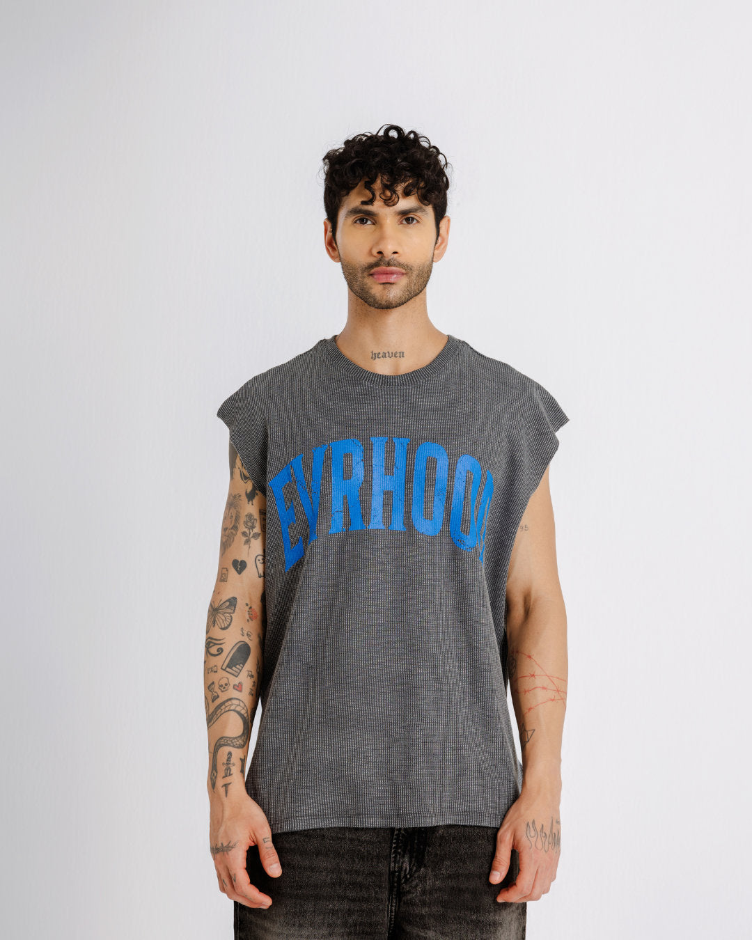 This sando is crafted from waffle knit fabric that gives it a textured, breathable feel - perfect for layering or wearing solo. The acid was finish gives it a rugged, worn in look, making each piece one of a kind.