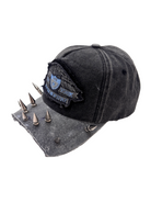 Forged from chaos, crowned in spikes. The Warcrest Cap is a battle-scarred relic turned street armor torn front cutouts, layered distressing, and rivets carved into a war crown. Built for the rebels who wear their scars like medals.