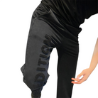 “Feel it to believe it…” Limited Edition Unisex Joggers crafted with a rare choice of Indigo knit fabric - a futuristic, premium, ultra-soft textile offering the structure and age of denim with the comfort of loungewear. It is flexible, durable and allows better airflow ideal for all weather conditions. Raw hem for a deconstructed look. Embroidered with black chenille text on the right leg.