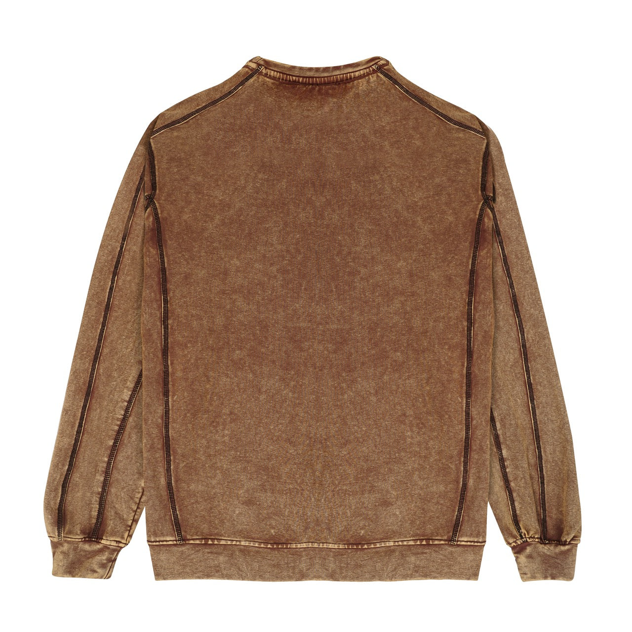 Washed vintage brown, contrast-stitch detail unisex sweatshirt for a lived