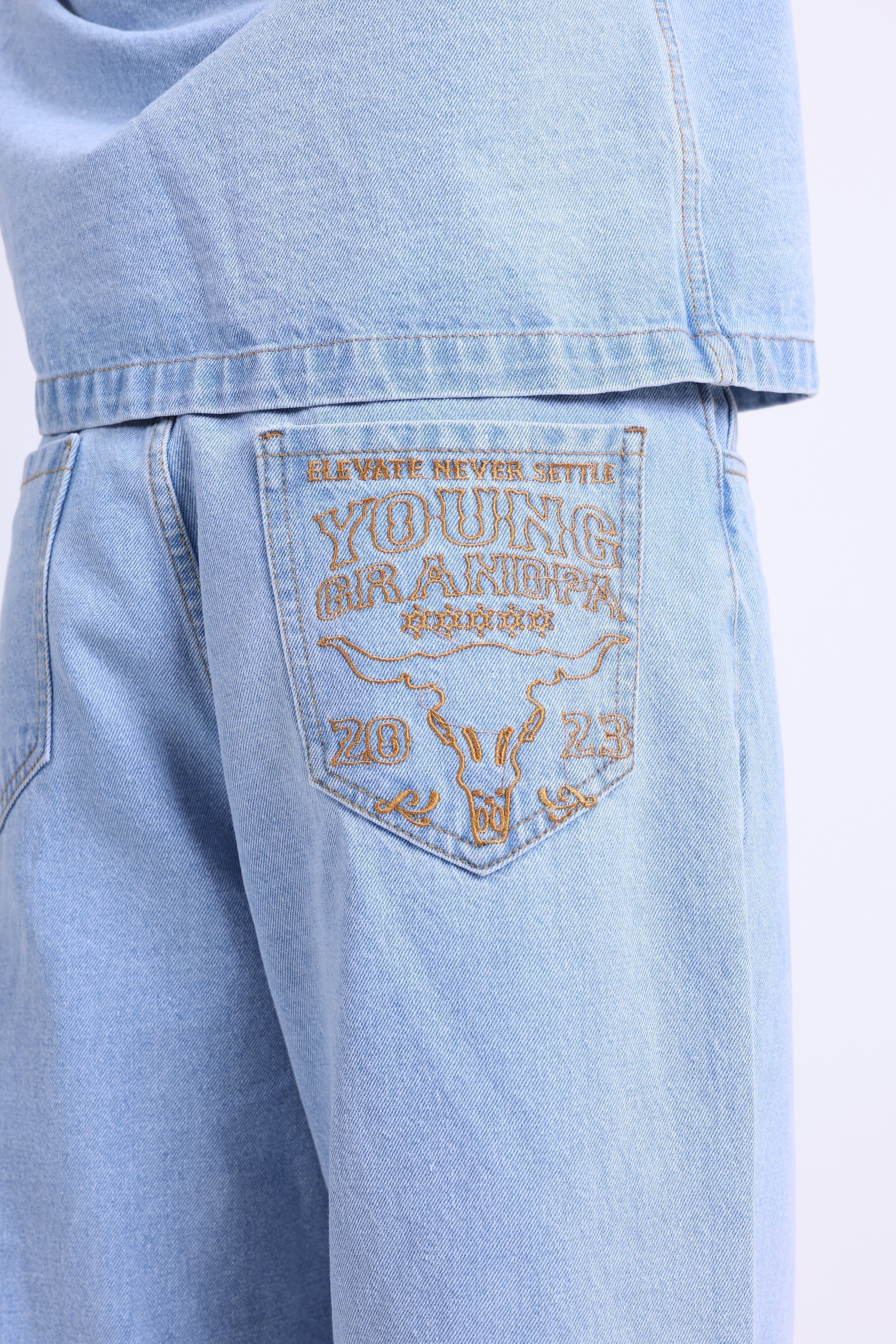 This Co-ord is constructed from 100% premium denim, offering a structured yet breathable fit for all-day wear. The Western coord-inspired design blends rugged aesthetics with subtle sophistication, making it a versatile piece for both casual street looks and elevated styling.