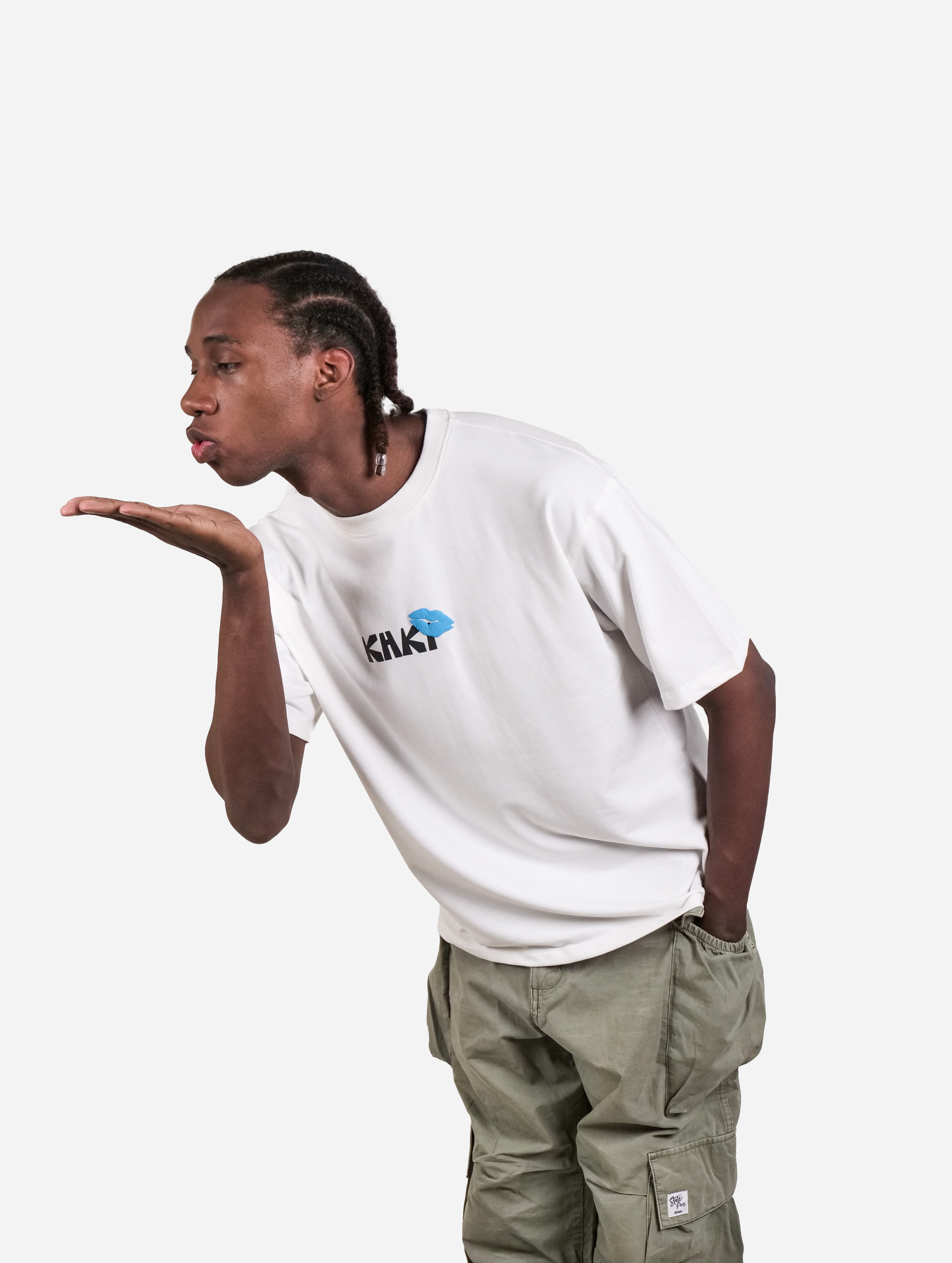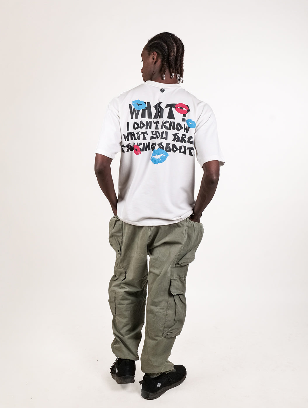 What? Kisses? White Graphic Drop Shoulder Unisex Oversized T-Shirt