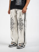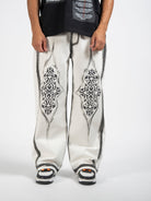 The contrast brush strokes combined with heritage motif front print design come together as a one-off design that works well for a special occasion as well to take along the road. If there's a white denim out there, that you must have in your wardrobe, it's this one.