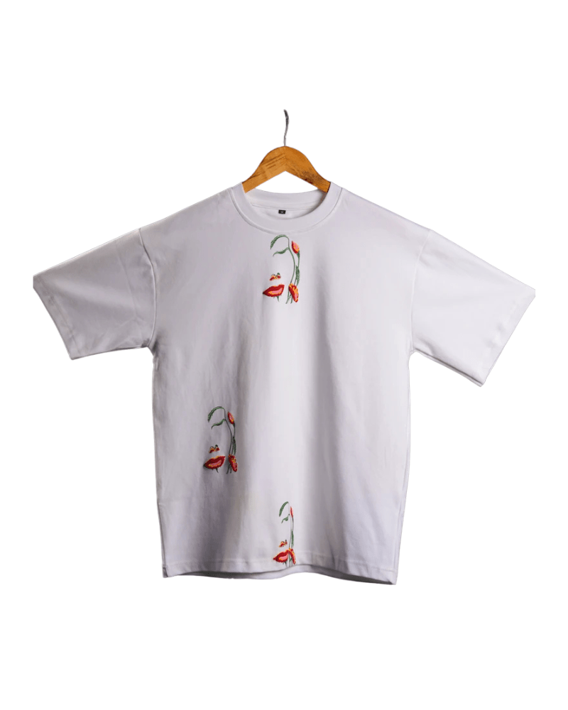 Elevate your look with the White Face Flower Oversized T-Shirt, where comfort meets bold, artistic expression. Perfect for casual outings and creative souls.