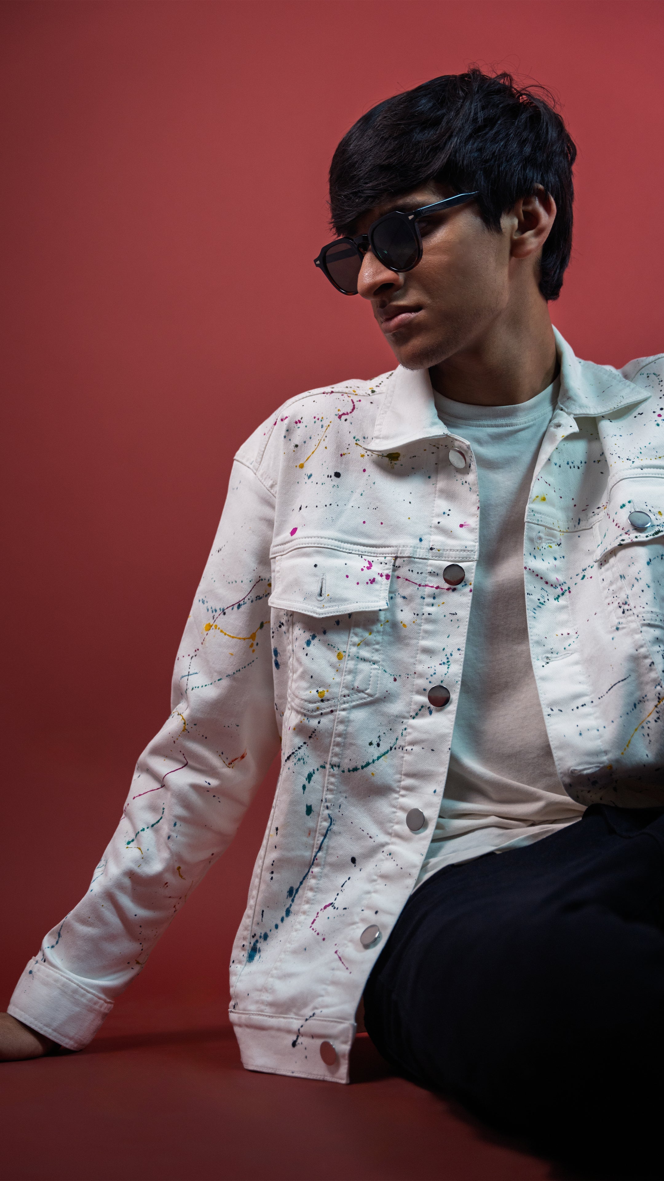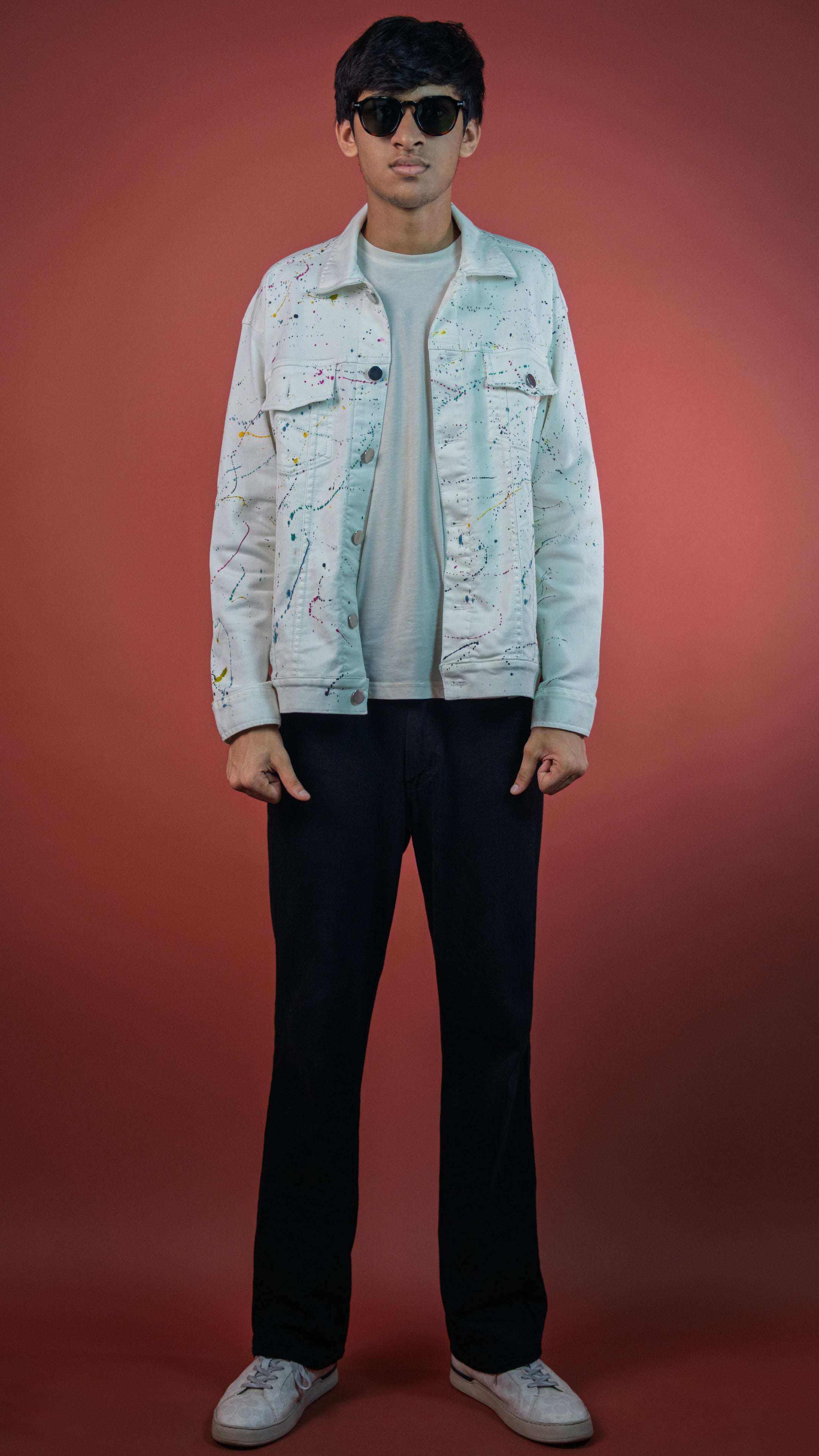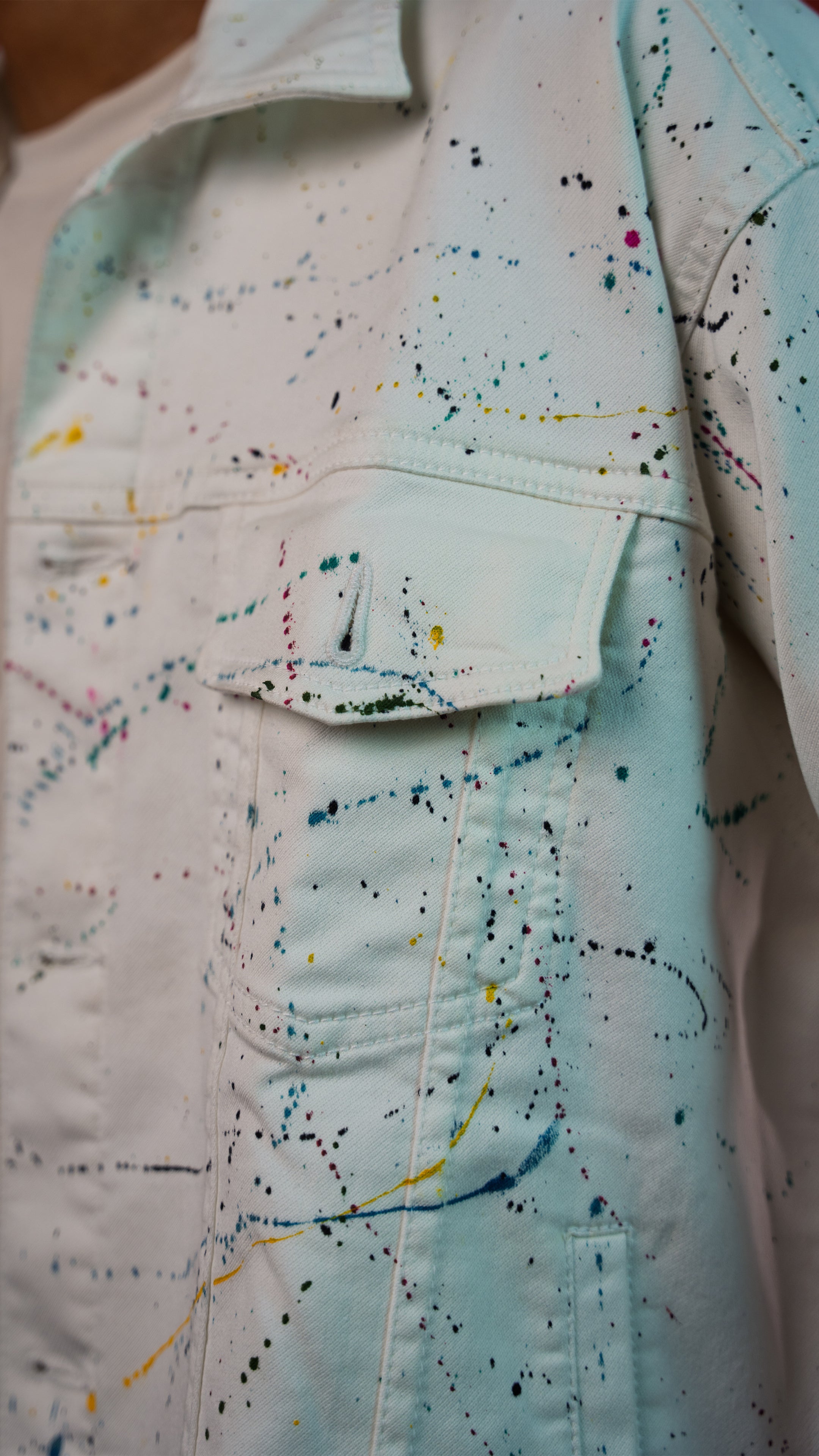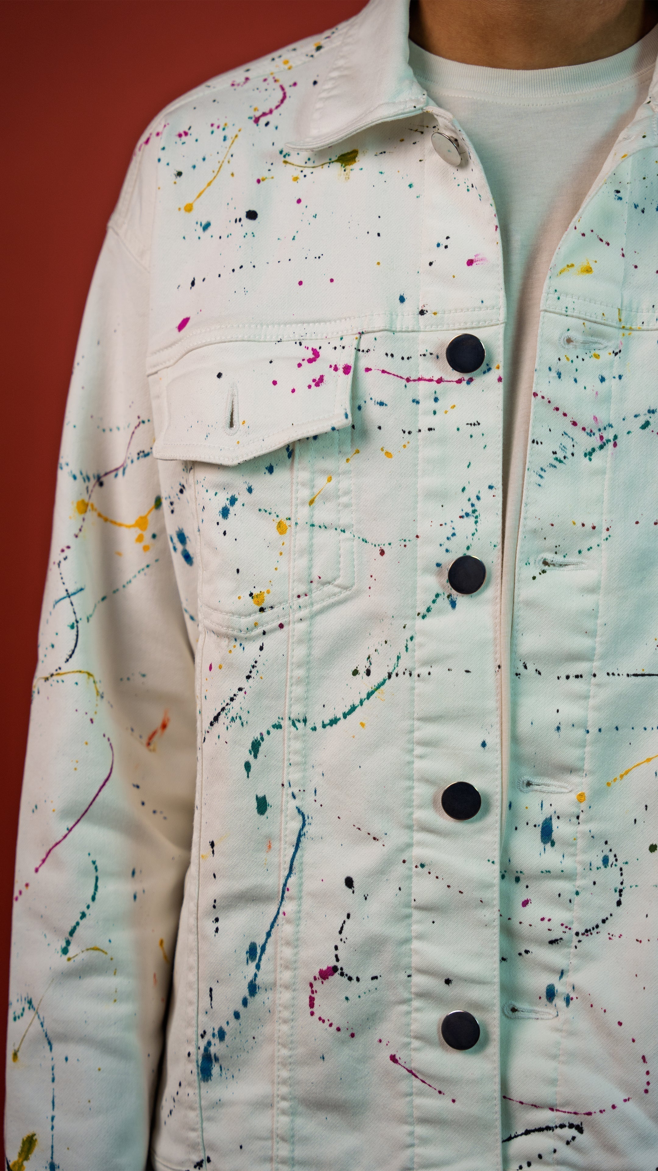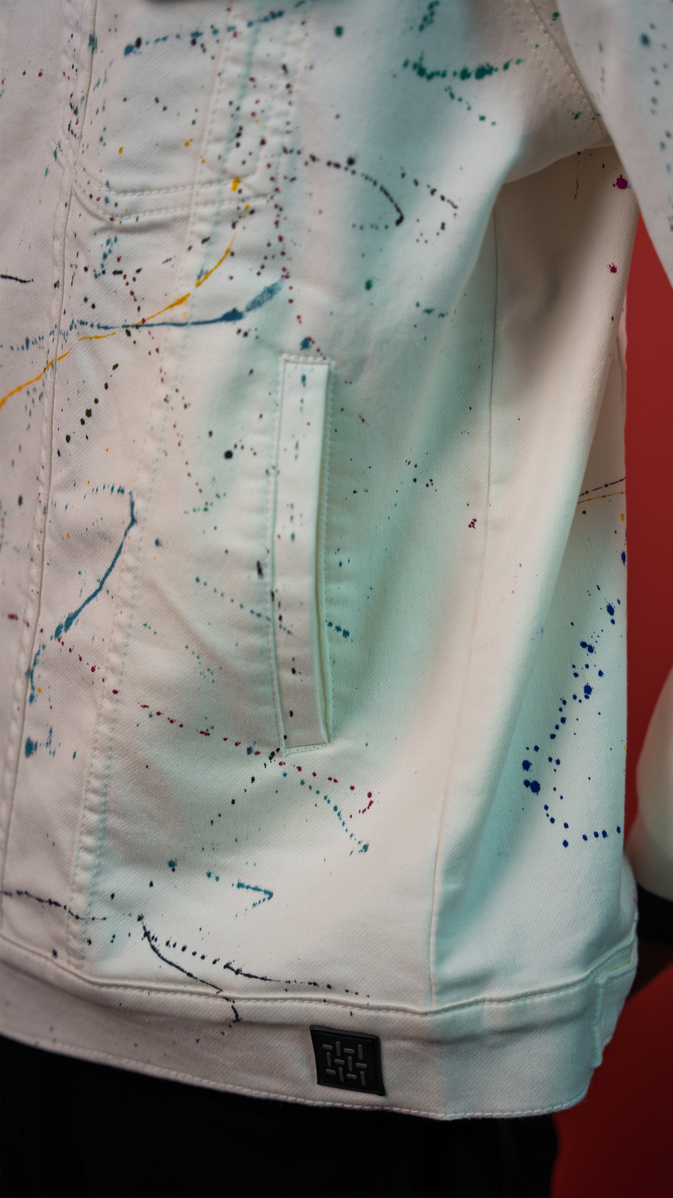 Crafted in heavyweight 12.5 oz white knitted stretch denim, this jacket is literally wearable art. Each piece is hand-painted using premium acrylic colours and crafted by hand, making every jacket truly one-of-a-kind. Built for comfort, flex, and making bold moves.
