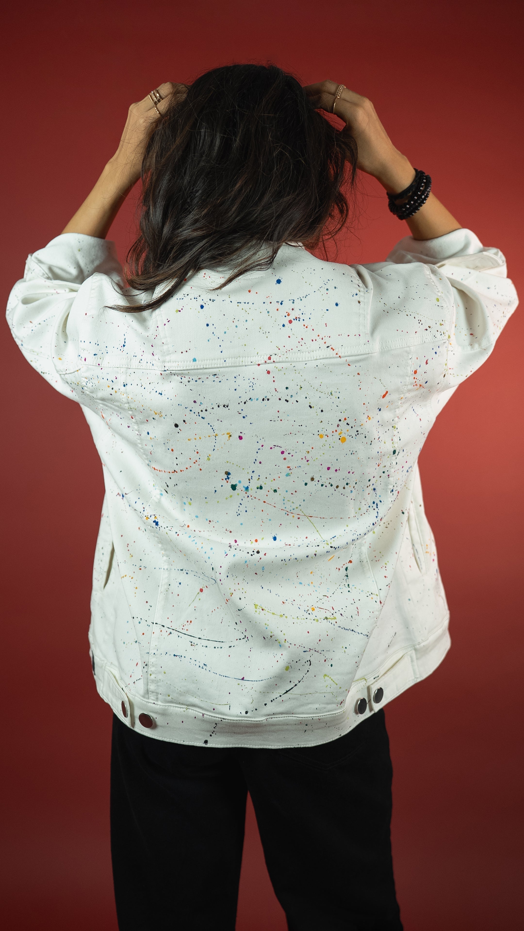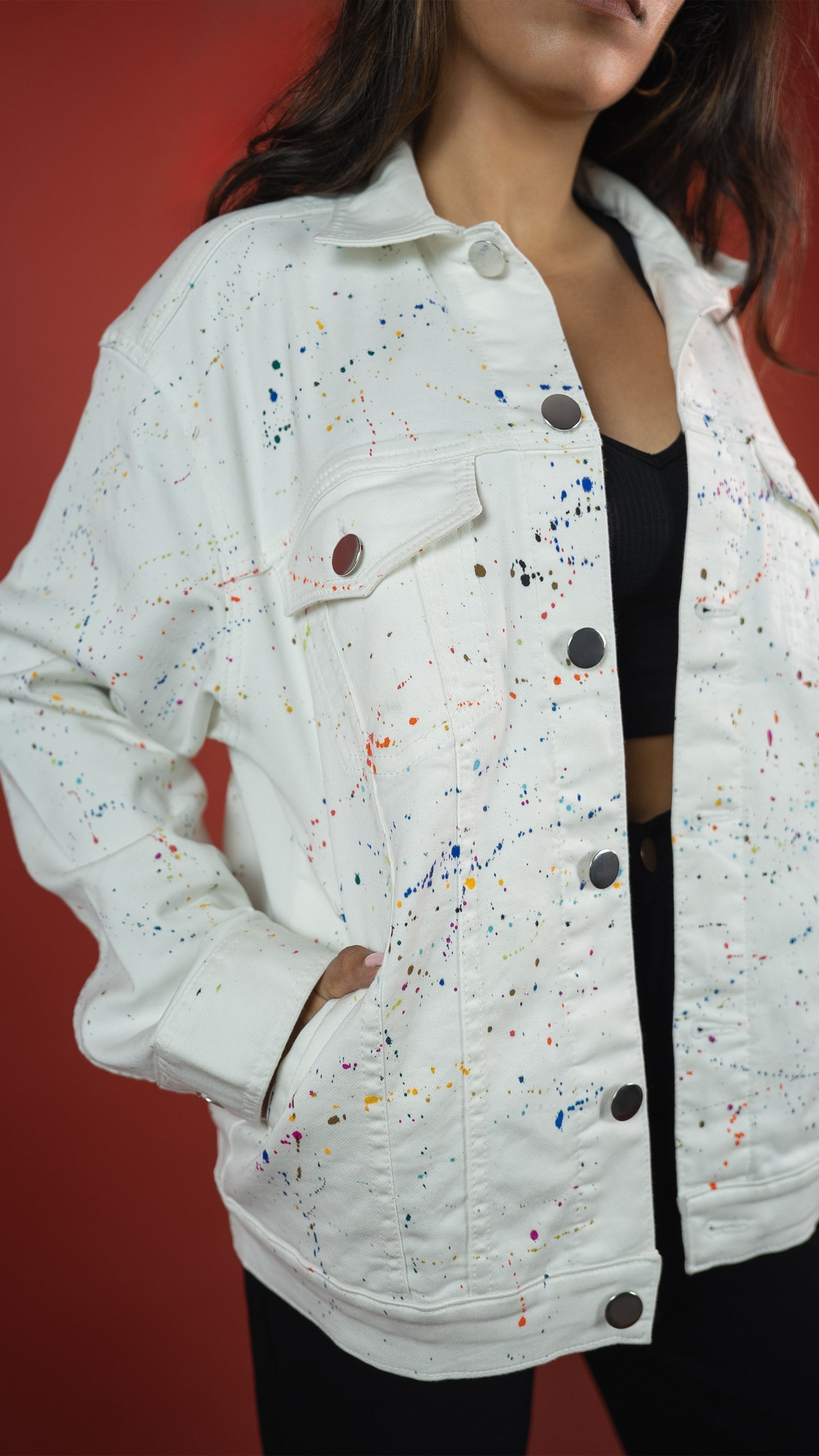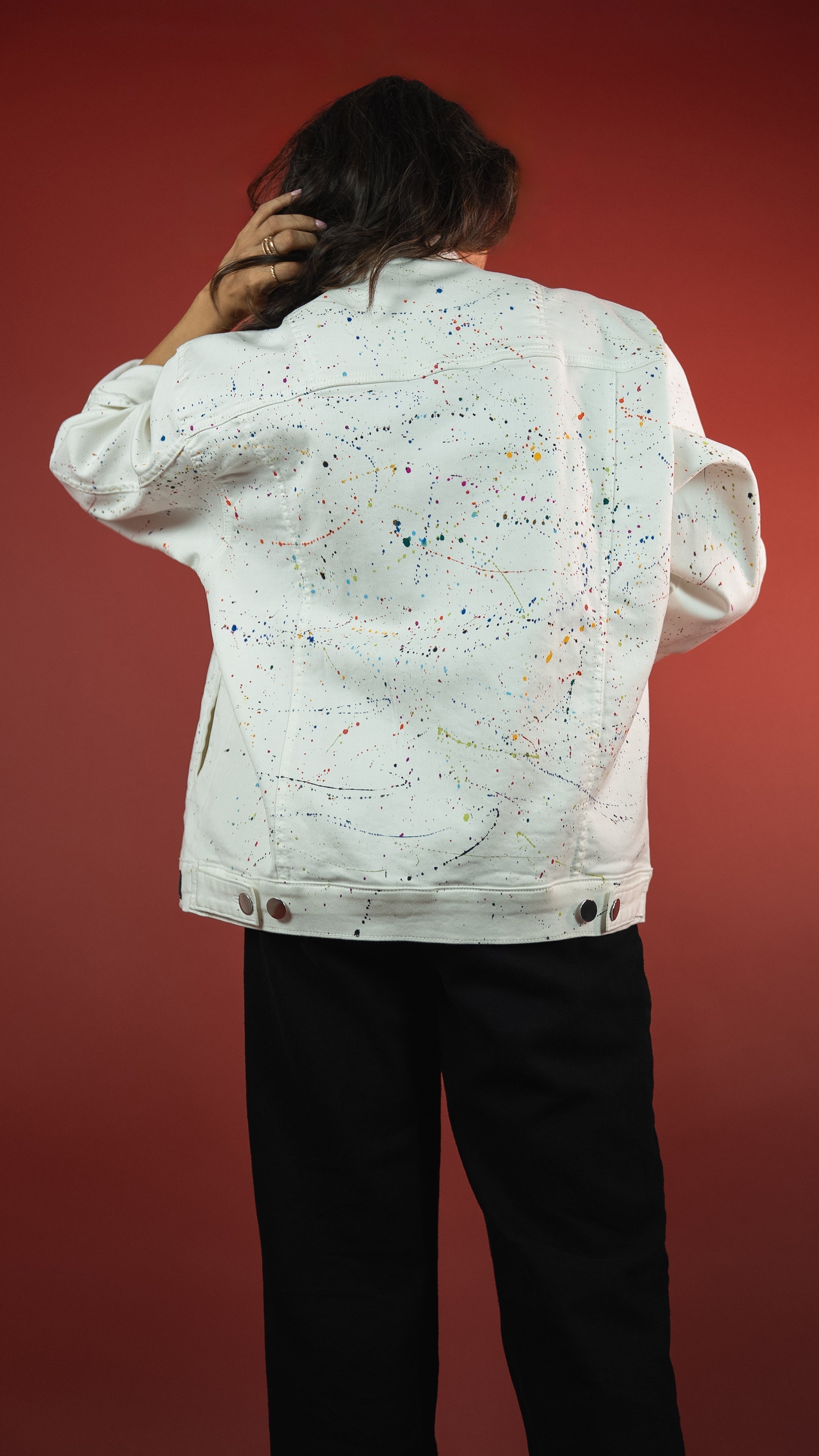 Crafted in heavyweight 12.5 oz white knitted stretch denim, this jacket is literally wearable art. Each piece is hand-painted using premium acrylic colours and crafted by hand, making every jacket truly one-of-a-kind. Built for comfort, flex, and making bold moves.
