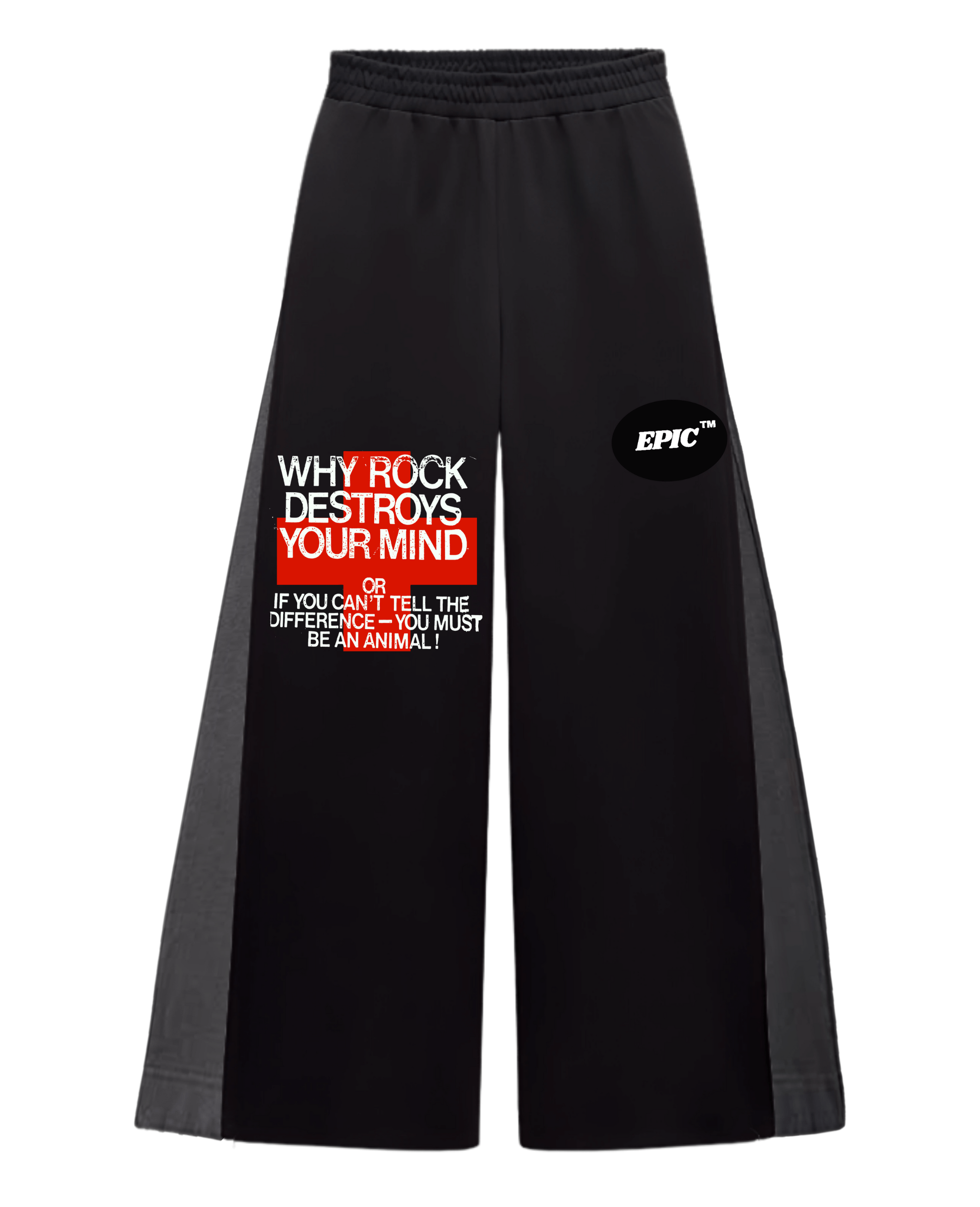• Black-grey flared graphic "Why Rock" sweatpant