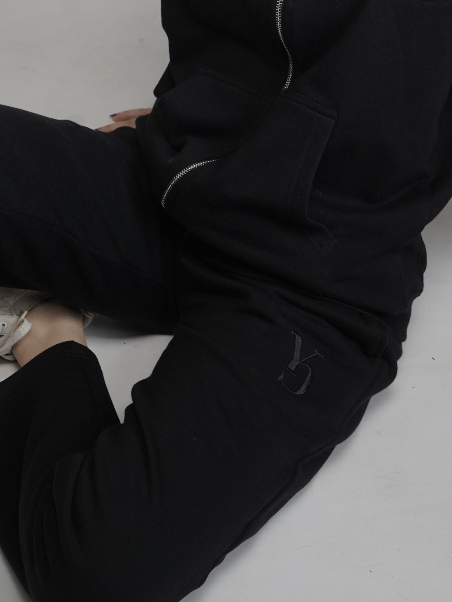 WIDE SWEAT PANTS - BLACK