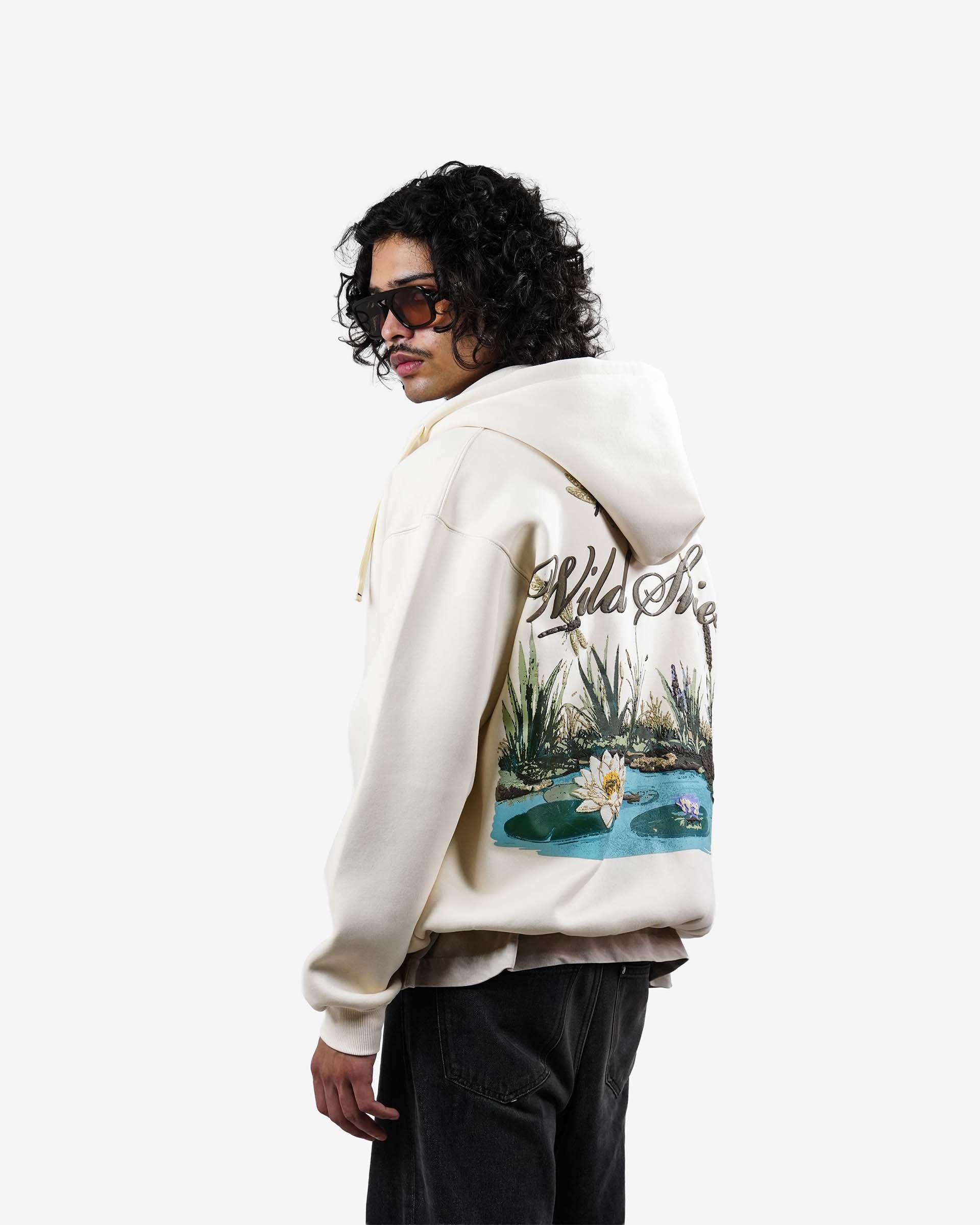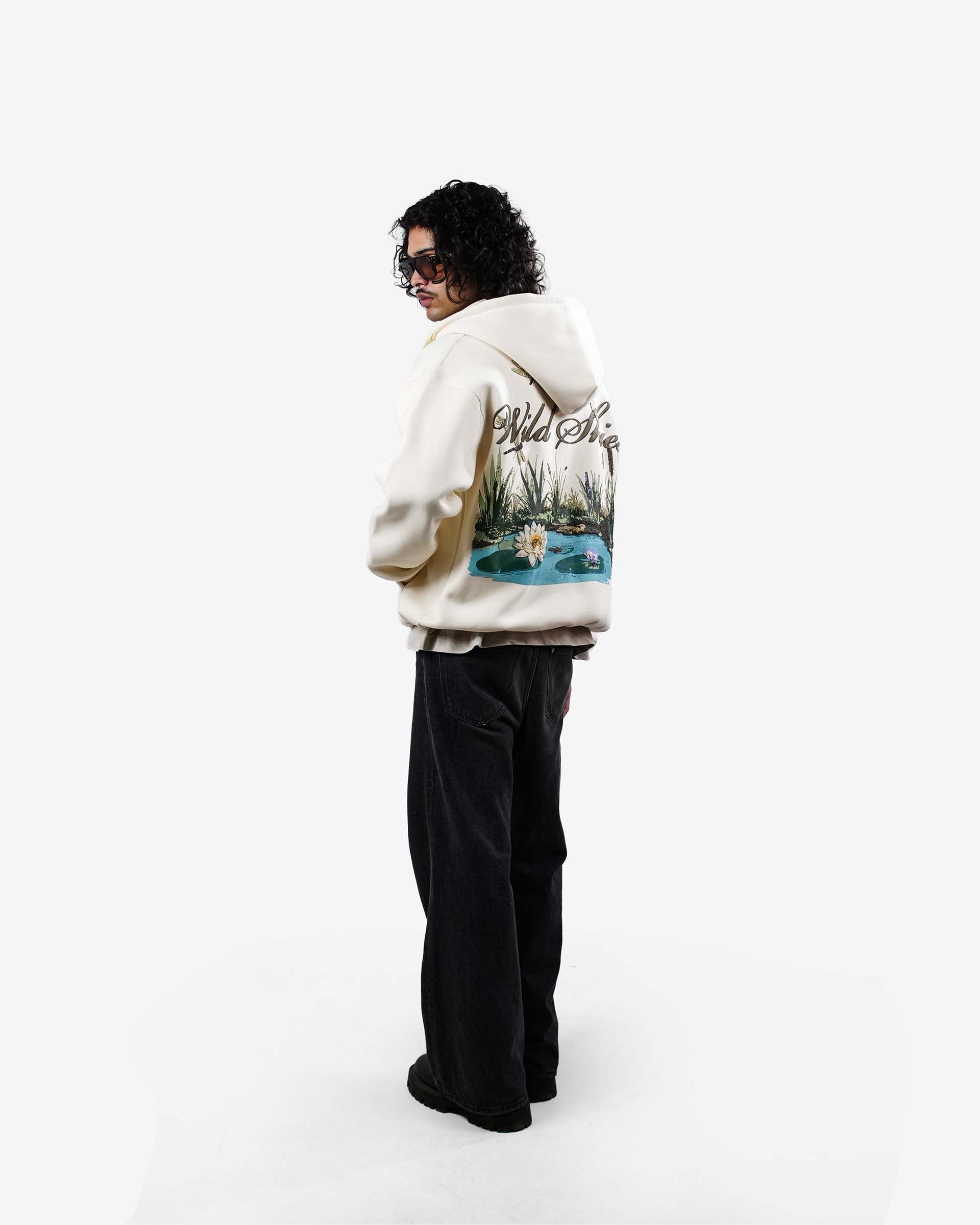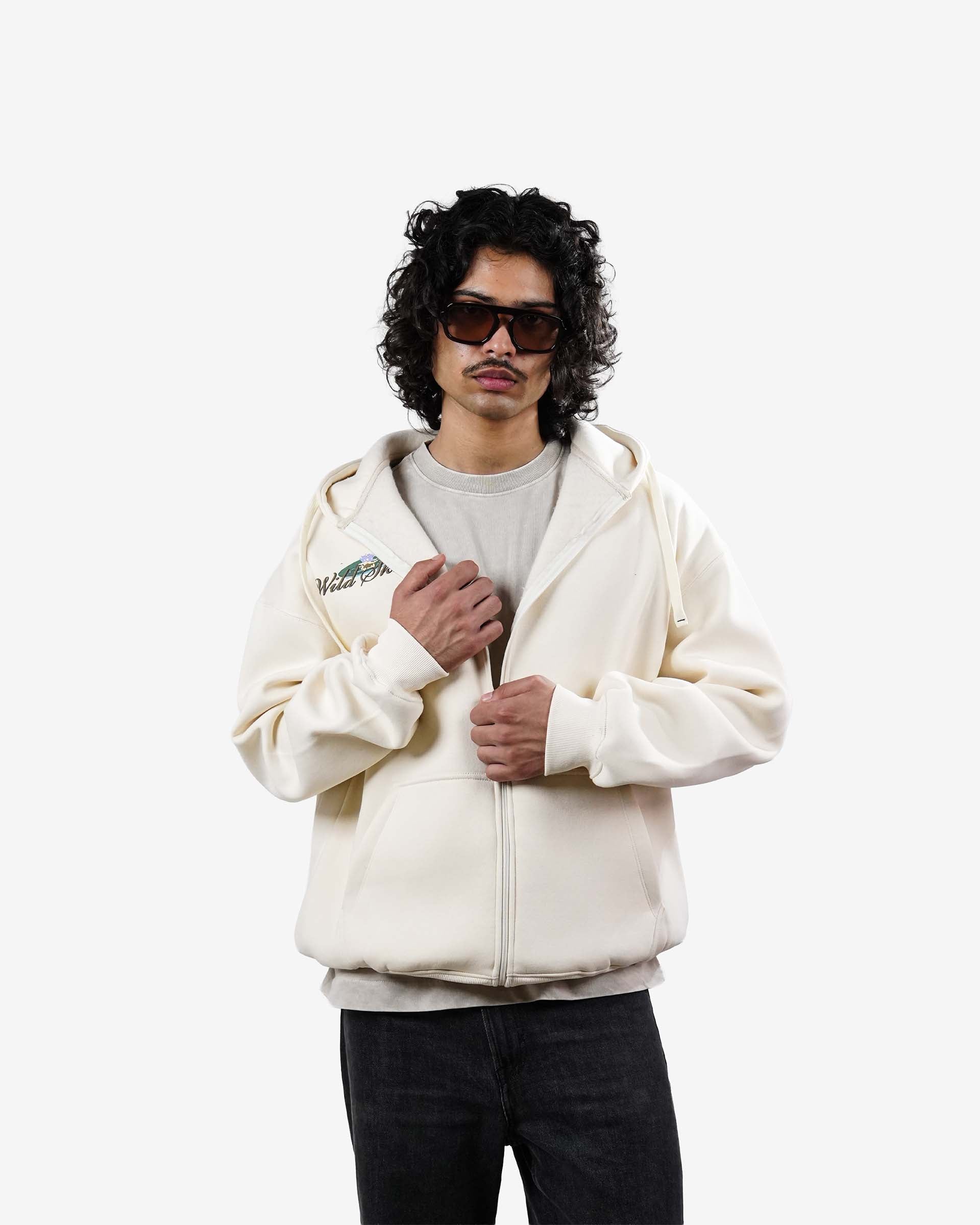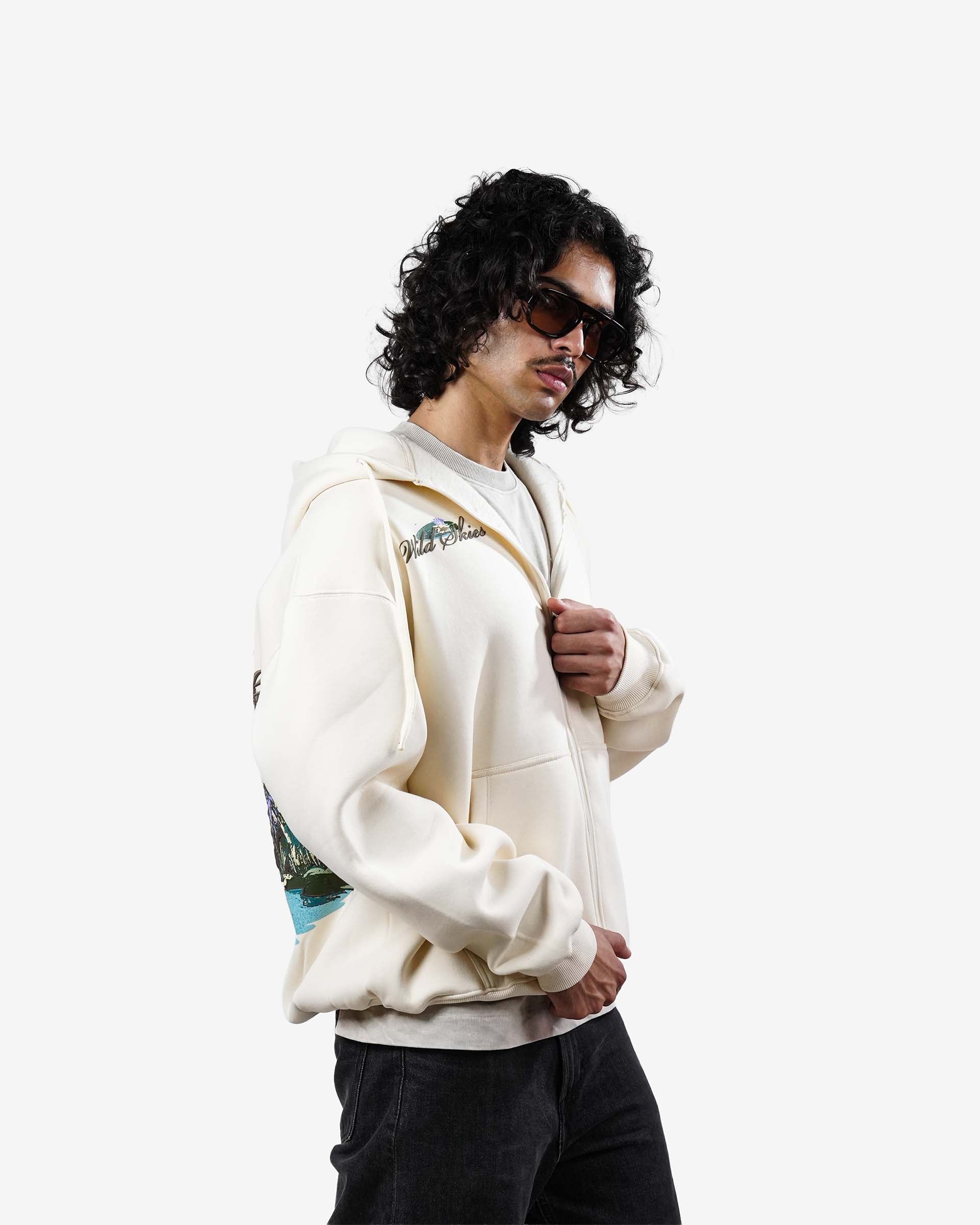 The Wild Skies Hoodie is crafted from premium 400 GSM Cotton 3-Thread Fleece with a smooth double silicone finish, giving it a rich, soft, and elevated feel. Its oversized zip-up silhouette brings a clean, modern streetwear look.