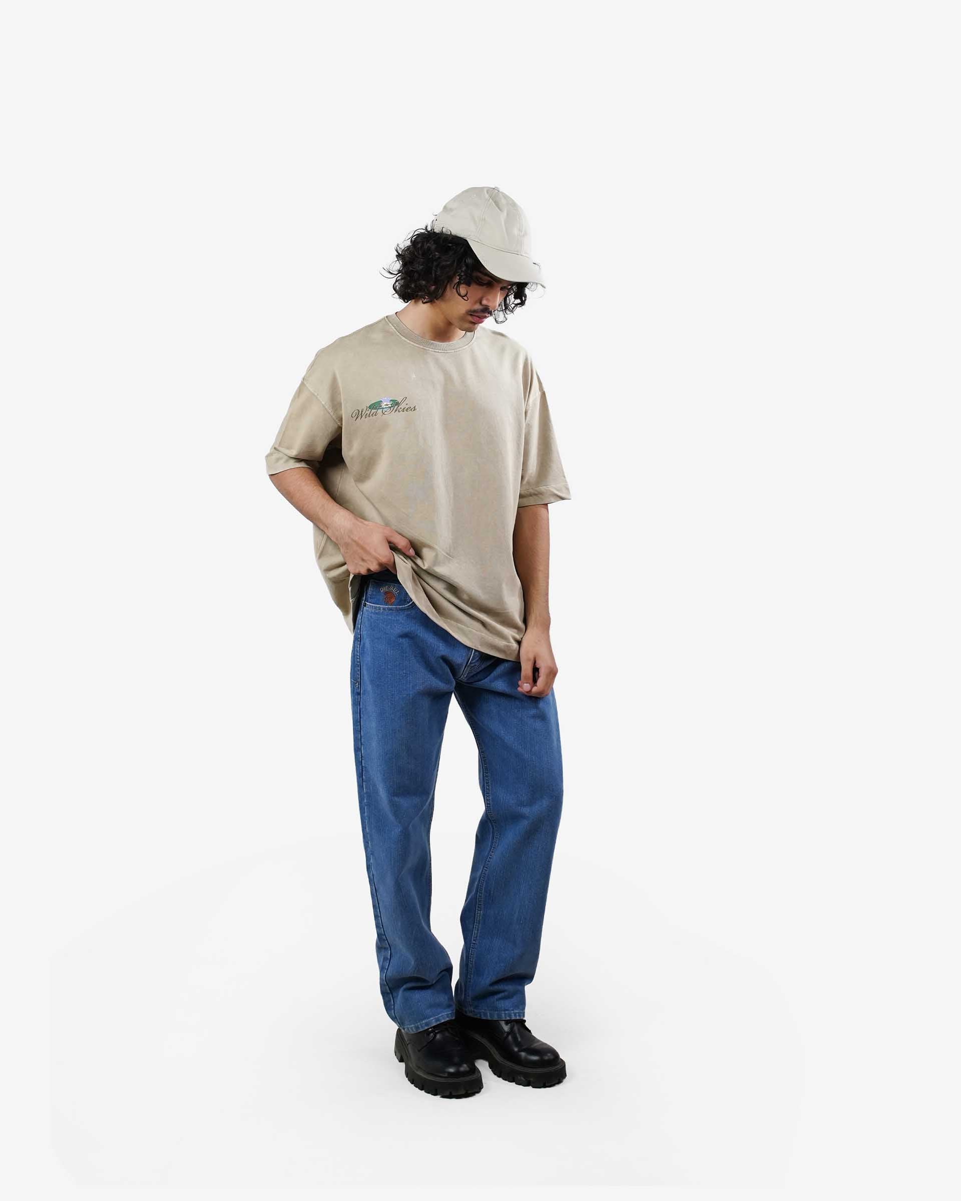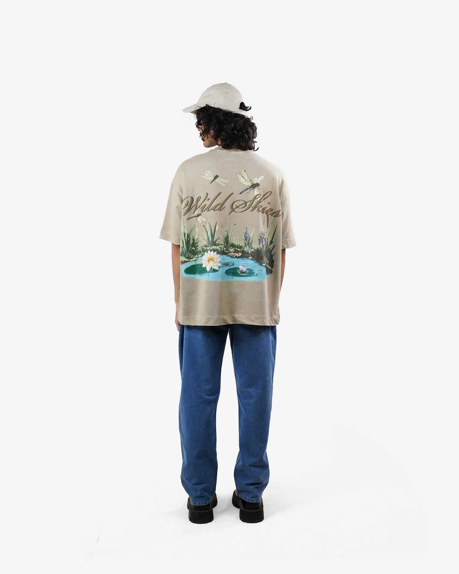 Wild Skies Tee - Beige Pigment Washed Oversized T-shirt