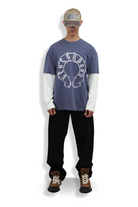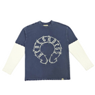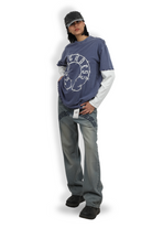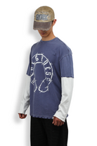 Oversized fit round neck t-shirt with add on full sleeves. Over-dyed with acid-washed treatment. Printed on the front panel. Distressed cuffs, bottom hem and neckline. Limited to only 50 pieces.