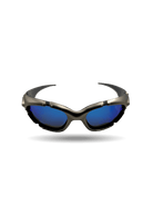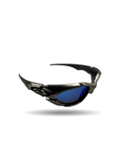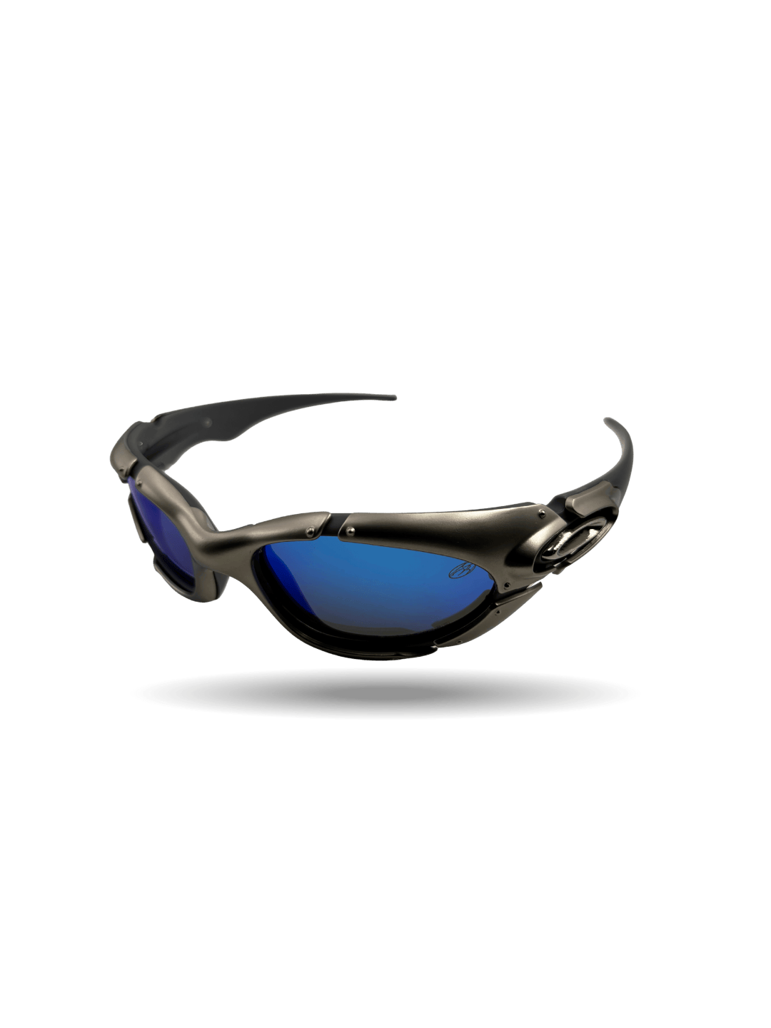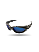 Lenses: Shatter-resistant, polarized polycarbonate lenses in electric blue with mirror finish and full UV400 protection