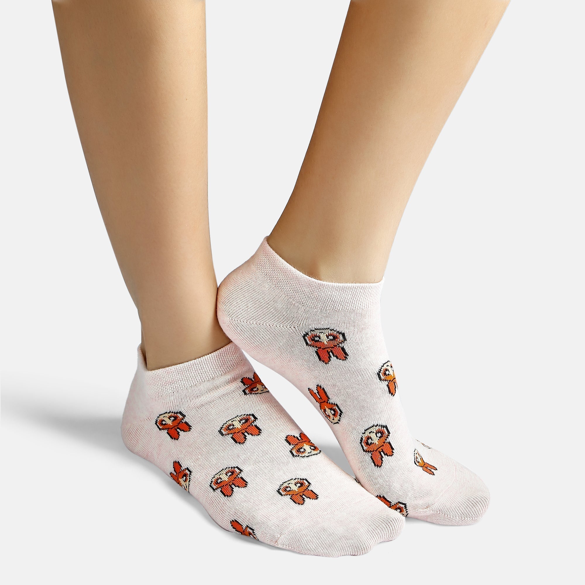 Made using a combination of combed cotton, nylon, spandex and elastic, these ankle socks ensure utmost comfort, stretchability and grip. Feel the (girl) power in every step you take.