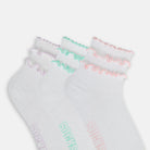 Add a playful twist to your essentials with our Women's Frilled High Ankle Socks — where comfort meets charm in every thread. This trio of soft white high-ankle socks features delicately ruffled cuffs in soothing lilac, mint, and blush tones, designed to bring a little joy to every step. Crafted in breathable combed cotton and stitched for all-day ease, they’re made to pair with sneakers, loafers, or even barefoot moments at home. Whether you're styling them with a skirt, denim, or your favorite oversized tee — this pack is here to sweeten your everyday style. Because basics don’t have to be boring — not when they’re trimmed with personality.