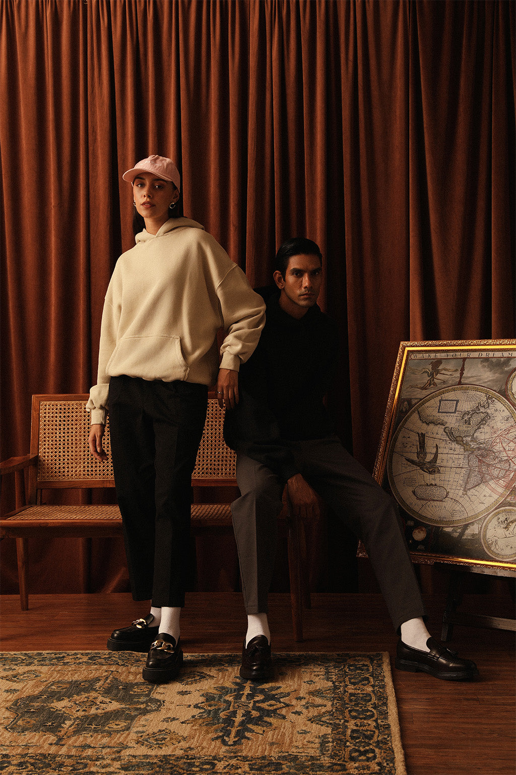 Inspired by vintage athletic sweatshirts from the '90s, our hoodie encapsulates the essence of the era. Crafted with precision, the garment delivers an oversized structure and a boxy silhouette, adorned with meticulously designed ribbing on cuffs and waistline for a flawless fit. Available in sand and twilight black colourway.