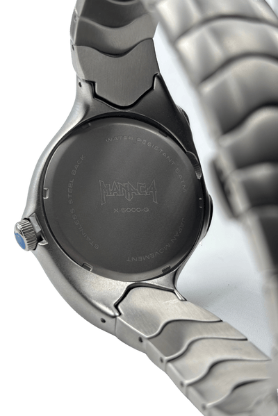 The X5000-Q (Lunar Silver Edition) is a bold fusion of Japanese precision and modern craftsmanship, designed for those who appreciate sophisticated timepieces with a commanding presence. Featuring a refined white dial, it offers a clean, futuristic aesthetic, complementing the polished silver stainless steel strap for a sleek, contemporary look.