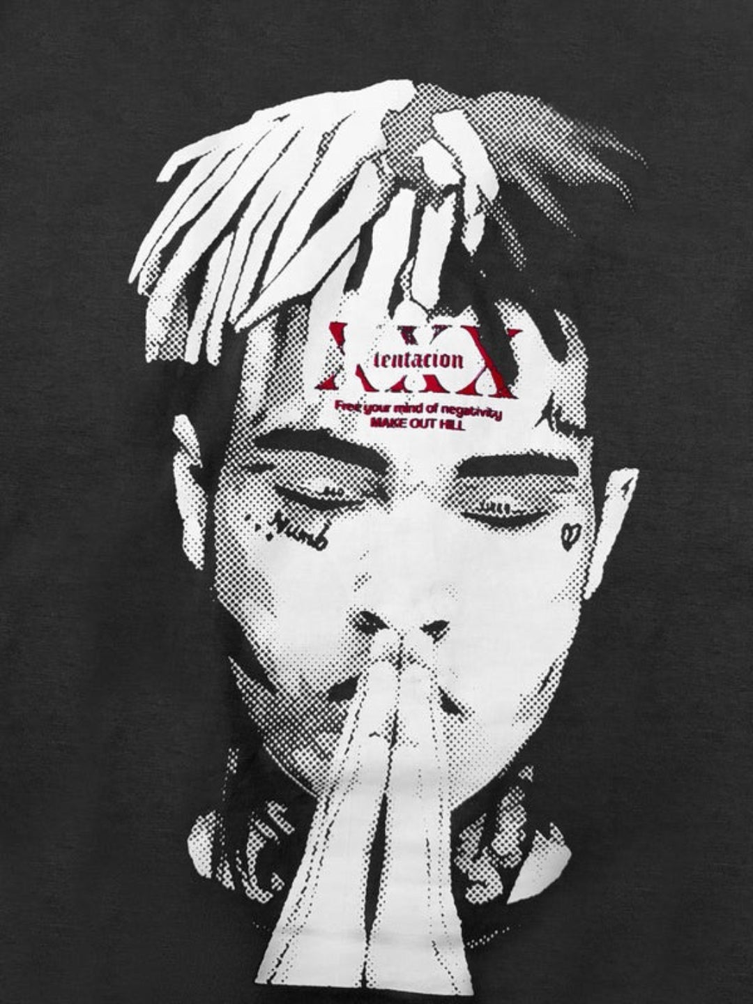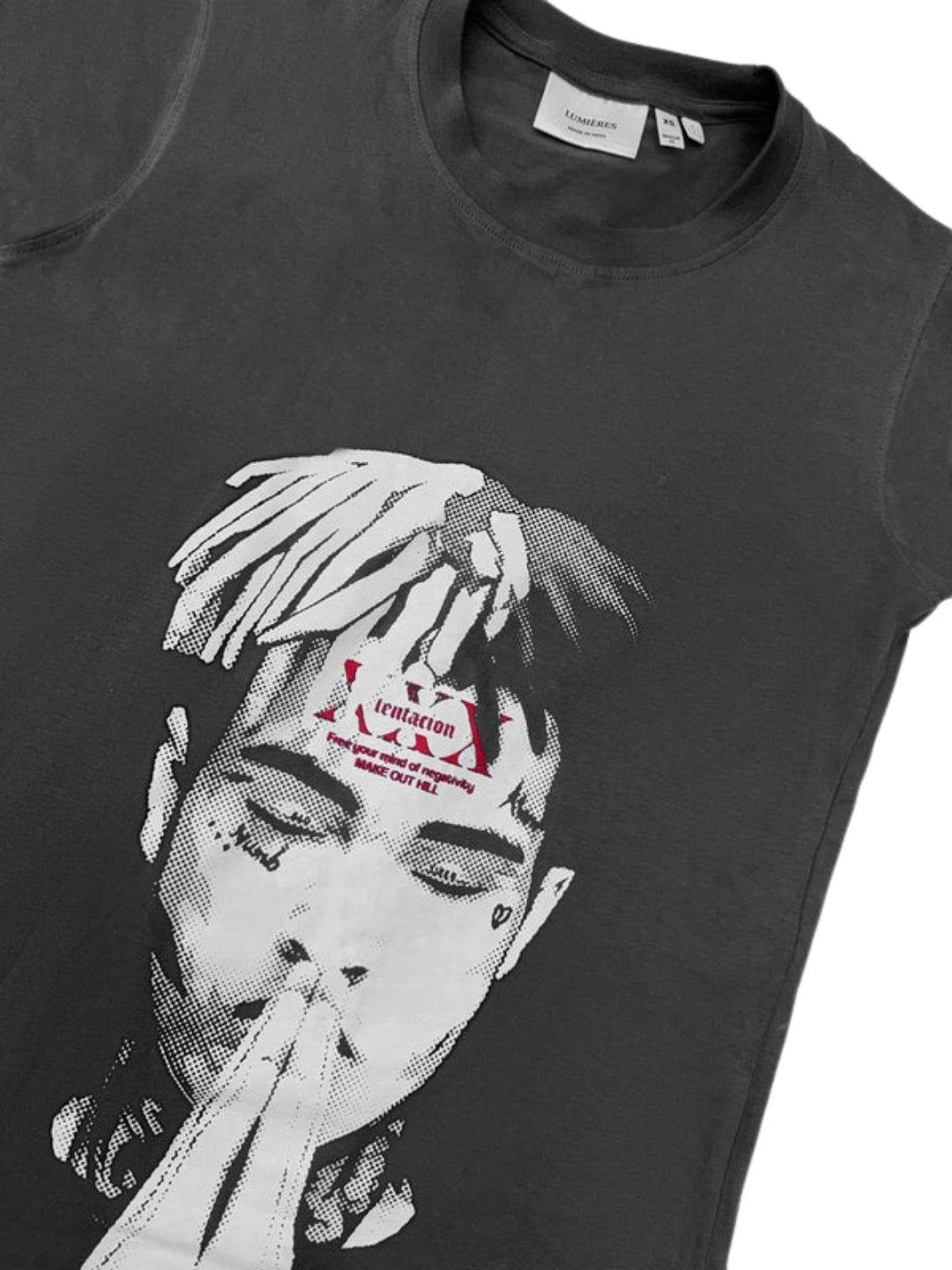 Unisex Regular Fit T-Shirt with crewneck and fitted sleeves available in 2 colorways : Charcoal and White. The design is a tribute to the legendary artist, XXX Tentacion and his impact on people's lives and the hip-hop culture through Music.