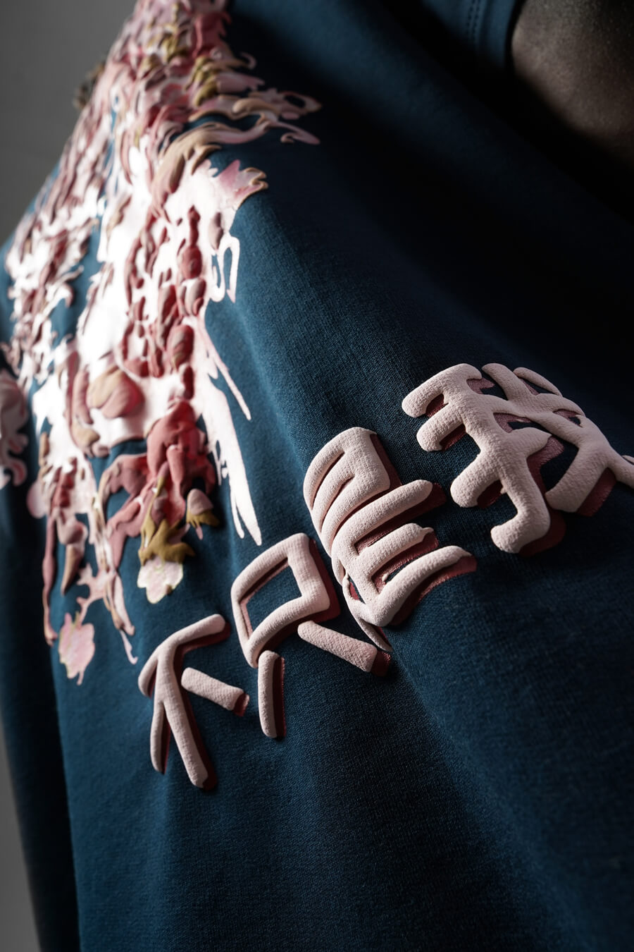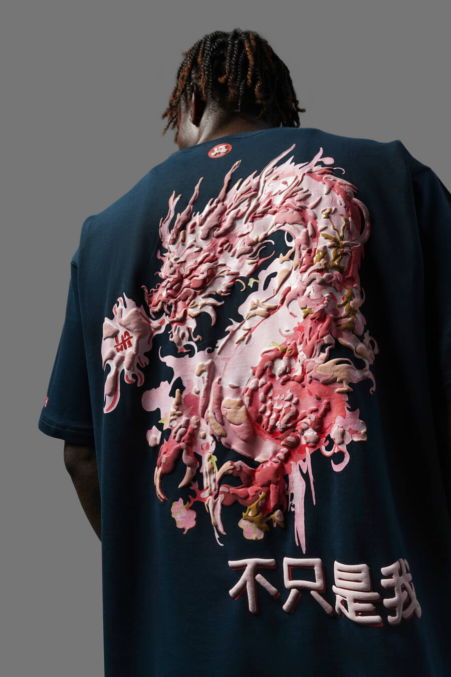 Inspired by the Chinese zodiac, this tee features a majestic dragon print adorning the back, crafted with 19 vibrant shades of pink.